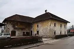 Spodnje Perovo Manor (dvorec Spodnje Perovo)—also known as Janežič Manor (Janežičeva graščina), Perau Manor, or Rasp Manor (Raspov dvorec)—stands in the northwest part of Spodnje Perovo. It was built by the Rasp family in the first half of the 17th century at the site of a medieval manor, and it has been remodeled several times since then. It is an L-shaped two-story structure that preserves Baroque architectural elements, including the door casing and window frames.[7]