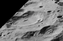 The crater was formally named by the IAU in 1970, after Charles D. Perrine.[1] The satellite craters Perrine G and Perrine S were called Crater 94 and Crater 91, respectively.[2]