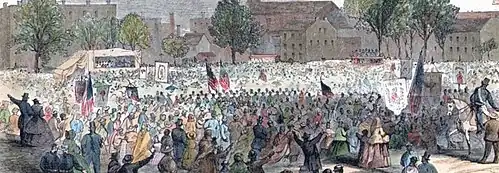 With a desire to act and make a difference in the lives of the black Washingtonians, Carson organized the "Boys in Blue," a regiment of local black men to defend the black residents from the nearby Irish men that saw the working class blacks as a threat to their own jobs and freedom.[5] This regiment gave Perry Carson the name of "Colonel." The local black regiment was once just an idea, however as the people heard of Carson's plan, they supported it and the plan was adopted.[6] Calling on the local black people, Carson expressed his intention for 1,500 colored men filled with patriotism to come out and meet with the selection committee and Carson himself.[6] Support for the black regiment was wide spread, even coming from Howard University with about fifty students willing to volunteer their time to the president in a fight for democracy.[6]