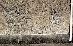 In Jerusalem, there have been instances of Christian churches and monasteries being vandalized with spray-painted offensive remarks against Christianity, including death threats. These are believed to be price tag attacks by extremist settlers.[84][85]