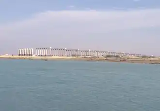 The Persian Gulf Bridge is a 2.4 km- (1.5 mi-) long road-rail bridge currently under construction, which will link Qeshm Island to Bandar Abbas on mainland Iran.[1] The groundbreaking ceremony for the project was attended by the former President of Iran, Mahmoud Ahmadinejad on 14 March 2011.[2] It will connect Qeshm Island from the historic port of Laft to Pahal port in Bandar Abbas in Hormozgan province. It is being built by an Iranian company at a cost of € 450 million. It will also connect Qeshm to the main transit corridor linking the Caspian port of Anzali to Bandar Abbas and Chabahar on the Gulf of Oman.[3] Due to several delays caused by disputes and concerns raised by environmentalists, and also due to COVID-19 pandemic, the project was expected to be completed at least by 2016/17, but it is now expected to be completed by either 2023 or 2024.