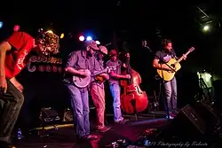 Pert Near Sandstone is an Americana/Roots band from Minneapolis/St. Paul, Minnesota, and an influential part of the Minnesota Roots Music scene that includes contemporaries Charlie Parr, Trampled By Turtles, and The Cactus Blossoms. Since forming in 2004, Pert Near Sandstone has recorded eight full-length albums, two live albums, and several singles. They have toured the United States extensively with several tours through Europe. Former full-time member (and now collaborator) Ryan Young plays fiddle with Trampled By Turtles. Dave Simonett of Trampled By Turtles has cited Pert Near Sandstone as one of his favorite contemporary bluegrass acts in the United States.[1] Beginning in 2015, Pert Near Sandstone has curated and hosted the Blue Ox Music Festival in Eau Claire, Wisconsin, attracting acts such as The Avett Brothers and Mike Gordon of Phish. Pert Near Sandstone have shared the stage with many legendary musical talents such as Ralph Stanley, Del McCoury, Steve Martin and the Steep Canyon Rangers, Wilco, and Yonder Mountain Stringband.