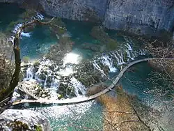 Lake Krušćica is an artificial lake and reservoir created in 1966 to help control flooding of the Lika. Behind a dam 80 metres (260 ft) high, the reservoir contains a flooded village with the church of St. Ilya.