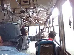 Perum PPD operates 59 articulated Zhongtong LCK6180GC buses for TransJakarta in cooperation with PT. Mobilindo Armada Cemerlang.[3][13] This is the third batch of Zhongtong articulated buses for TransJakarta, after the first batch bought by Perum DAMRI and the second by the Jakarta Department of Transportation. A blue - white livery with blue stripes distinguishes these units from its identical predecessors that were colored with a red - yellow livery. The interior is dominated with yellow railings and features cushioned chairs. The units were imported in 2016, however administration problems led to a delay of operations up to 2019.[14] It is stated that these units are not a part of the 2013 Bus Corruption.[15]