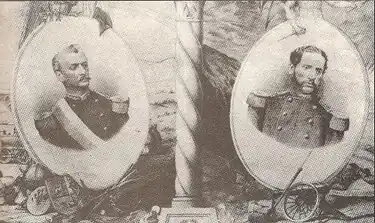 ![]() The two rivals after the War of the Pacific, Miguel Iglesias (liberal) and Andres A. Càceres (conservative) | |||||||