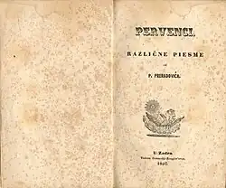 Pervenci (English: Premières), subtitled različne piesme, is a collection of 35 poems written by Croatian poet Petar Preradović. They were first published in 1846 in Zadar.