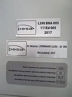 - ^ "Certificate for Pesa 111Ed (with variants 111E, 111Eb, 111Ec)". Urząd Transportu Kolejowego (Railway Transport Office) (in Polish). Retrieved 22 August 2017.