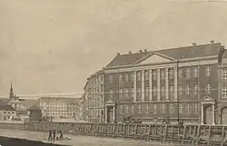 The bank Landmandsbanken purchased the building in 1872.[3] An apartment for managing director Isak Glückstadt and his family was created on the second floor.[1] Landmandsbanken later turned into Danske Bank. In March 2015, it was announced that Danske Bank had sold its headquarters to Standard Life for DKK 1.4 billions.[4] Later in 2016, it was announced that Danske Bank has plans to move their headquarters to new premises at the former mail terminal next to Copenhagen Central Station.
