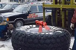 | 1982 | Industrial truck tire. Fused rim. Filled internally with 3 tons of concrete[2] | Kunkel | ![]() |
