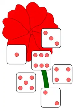 Petals Around the Rose is a mathematically challenging puzzle in which the object is to work out the formula by which a number is derived from the roll of a set of five or six dice. It is often used as an exercise in inductive reasoning.[1] The puzzle became popular in computer circles in the mid 1970s,[2] particularly through an anecdote recounted in Personal Computing which depicts Bill Gates working out the solution in an airport.[3]