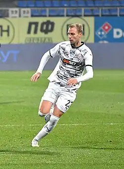 On the last day of the summer transfer window 2017, Mićin signed a five-year professional contract with Čukarički.[8] He scored his first goal for new club in his debut match, for 2–0 away victory over Mačva Šabac on 8 September 2017.[9] He scored a twice in a cup win against Jagodina on 20 September,[10] as also the only for beating Zlatibor Čajetina in the same competition.[11] Finally, Mićin scored his fifth goal in the first half-season against Red Star Belgrade on 26 November 2017.[12]