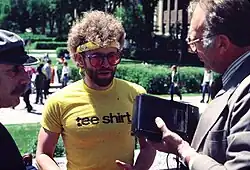 Wagner described himself in the 1970s and 1980s as "an activist who also happens to be a cartoonist".[10] He frequently used guerrilla theatre that fueled controversies.[11][12][13][14][15][16][17][18][19] He protested speaking engagements by many leading conservative of the time, such as Anita Bryant, Ronald Reagan and Jerry Falwell in ways that attracted media attention.[20][21] He ran for student president of the University of Minnesota in 1976, under the "Tupperware Party".[22][23][24]