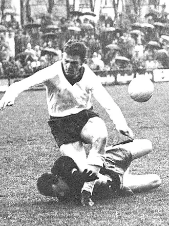 Following a serious foot injury during a home game on March 19, 1961 at the Landhof, Brendle joined TV KleinBasel[5]’s track & field team, where he became a junior champion winning a ‘laurel wreath’ in Decathlon at the largest Swiss Sports Event, the Federal Gymnastics Festival (Lorbeerkranz am Eidgenössischen Turnfest 1963); as a multi-talented sportsman, he also played Handball in the Swiss National B League for TVKB. During the football season 1962/63 he was bought by FC Concordia from FC Basel, where he continued competing in track & field competitions while also becoming the top season-scorer for the Football Club. Brendle was later selected for the Basel team to play Munich in Munich for the Messestädte Cup (now UEFA League) but the game was cancelled due to thick fog.