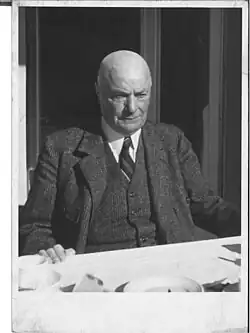 According to a press release, after Hitler's speech at the Düsseldorf Industrial Club in January 1932, Klöckner urgently warned about Nazi "experiments". He did not join the NSDAP and viewed the Nazi state's intervention in the economy with concern, fearing expropriation. He was never appointed Wehrwirtschaftsführer, 'military economy leader' and was monitored by the Gestapo as a "politically active person".[7] On the other hand, he did not oppose the system in any recognizable way. He occasionally expressed admiration for the Führer and adapted to the system, at least outwardly. Large parts of his group were integrated into the state-controlled military and war economy.[3]