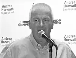 Peter Kormos (October 7, 1952 – March 30, 2013)[1] was a politician in Welland, Ontario, Canada. A lawyer by profession, he was first elected as an Ontario New Democratic Party (ONDP) Member of Provincial Parliament (MPP) to the Legislative Assembly of Ontario in the Welland constituency in a 1988 provincial by-election. He replaced veteran NDP legislator Mel Swart. Kormos was re-elected in every subsequent Ontario general election until his retirement from provincial politics in 2011.