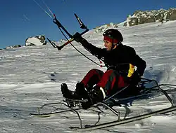 Lynn has developed the KiteSled (see image), for kite-powered snow expeditioning. It steers by bending its skis, which are constructed from multiple longitudinal elements dovetailed together. Using KiteSleds, in May 2006 Australians Patrick Spiers and Ben Deacon completed a 700 km trans-Greenland journey that they believe was 20% faster than would have been possible by kite skiing.