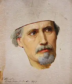 He was there for less than a year when his studies were interrupted. His parents died within a few months of each other, so he had to return home to attend to the family's business. He was able to return to the Akademie in 1841 and studied portrait painting with Karl Ferdinand Sohn. He also developed an interest in history painting. His studies were completed in 1844, and his first known painting, depicting Werner of Oberwesel, dates from the following year. Except for a visit to Munich, nothing is known of his whereabouts from then until he returned to Koblenz around 1850.[1]