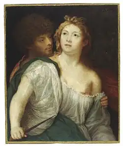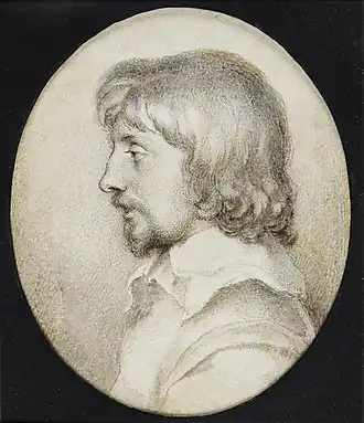 He was even more eminent in miniature painting than his father, and is specially remarkable for a series of copies in watercolor he made after celebrated pictures by old masters. Most of these were done by the desire of the king, and seven of them still remain at Windsor Castle. A great many of Oliver's works were purchased by Charles II from his widow; several of his drawings are in existence, and a leaf from his pocket-book in the collection of the earl of Derby. His most important work is the group of the three grandsons of Anthony Browne, 1st Viscount Montague with their servant, now belonging to the marquess of Exeter; and there are fine miniatures by him at Welbeck Abbey, Montagu House, Sherborne Castle, Minley Manor, Belvoir Castle and in the private collection of Queen Wilhelmina.[2]