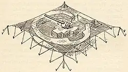 Proud worked as a camouflage officer under Geoffrey Barkas in the Western Desert in the Second World War, and was responsible for effective camouflage and deception in the Siege of Tobruk.[5][6] With Steven Sykes, he created the dummy port at Ras al Hilal to divert enemy attention from the Eighth Army's vital supply ports.[7] He was a creative camoufleur, inventing the "Net Gun Pit", a quickly-erected structure of netting and canvas, that from the air closely resembled an anti-aircraft gun in a sandbagged pit.[2][8]