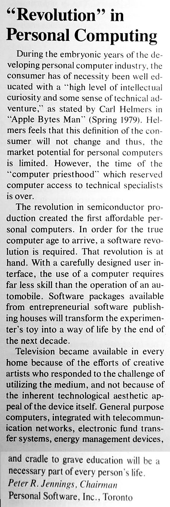 - ^ Jennings, Peter R (1979). "A Revolution in Personal Computing". Wharton Magazine.