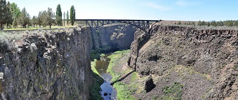 Located 9 miles (14 km) north of Redmond along on U.S. Route 97, Peter Skene Ogden State Scenic Viewpoint is a rest area and viewpoint with limited (but available) parking for trucks and vehicles with trailers. Facilities include restrooms, picnic tables and dramatic viewing of the Crooked River canyon, as well as a views of the Crooked River Railroad Bridge, the Crooked River High Bridge, and the Rex T. Barber Veterans Memorial Bridge. The area is very popular with photographers. The developed area is on the west side of U.S. Route 97, but is accessible easily to both north and southbound traffic with a drive through parking and loop exit for both trucks and trailers.