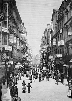 There were numerous courtyards on Petersstrasse, some of which had passageways into the neighboring streets (on the western side of Petersstrasse to Thomaskirchhof[6] or Burgstrasse, on the eastern side of Petersstrasse to Neumarkt, which was called Neuer Neumarkt until 1839).[7]