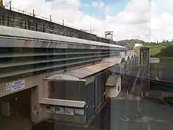 The Petit-Saut Dam is a gravity dam on the Sinnamary River about 36 km (22 mi) south of Sinnamary in French Guiana. The primary purpose of the dam is to produce hydroelectric power and it supports a 116 MW power station. Construction on the dam and power station began in July 1989 and placement of concrete for the dam started in July 1992. The dam was complete in February 1993 and the first generator was operational in January 1994. The last went online in 1995.[1] It is owned by Électricité de France.[2] Construction of the dam and impounding of its large 3,500,000,000 m3 (2,800,000 acre⋅ft) reservoir led to several environmental issues that continue to be monitored and addressed. These issues include deforestation, greenhouse gases and water deoxidation.[3]