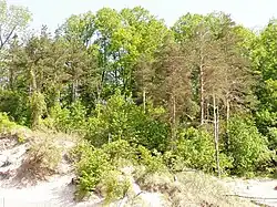 ![]() Location of Petit Fort (signs on the right) on Lake Michigan, which is south of the Bathhouse | |