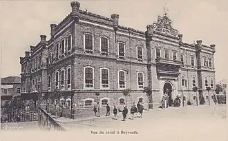 The Serail was built to serve as the seat of the Vilayet of Syria; it housed municipal and provincial offices including Beirut's judicial court. In 1888 Beirut became the provincial capital of the Beirut Vilayet and the Petit Serail hosted the seat of the Wali.[6] Beirut Wali Azmi Bey transferred the seat of the vilayet to the Grand Serail,[8] while the municipal offices and the telegraph service office were moved to the Petit Serail.[7]