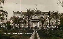 The Petit Serail (Arabic: السراي الصغير / ALA-LC: as-sarāy as- ṣaghir; literally "Little Saray") was a historic administrative Ottoman building in Beirut that housed the seat of the Wali of Syria and Beirut. It was situated to the northern side of Martyrs' Square at the heart of the Beirut Central District. The building was the scene of important historical events but plans to enlarge Beirut's main square led to its destruction in 1950. It was one of several Ottoman era building projects that shaped the architecture of Lebanon in Beirut.