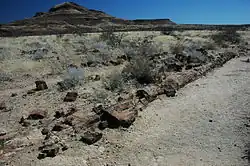 The Petrified forest, located 42 kilometres (26 mi) west of the Namibian town of Khorixas, on the C39 road, is a deposit of large tree trunks that have "turned to stone" through a process of diagenesis. There are at least two large tree trunks, each 45 metres (148 ft) long, exposed to view. Several hundred others are located in the vicinity.[1]