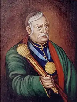 Kalnyshevsky's stint in office, however, would not last long; in October 1763 he was removed by the personal orders of Empress Catherine. He returned to his office as kish judge after his removal.[7] He was succeeded by Lantukh, whom he himself had replaced a year prior, due to the influence of the Siroma class of impoverished Cossacks.[8]
