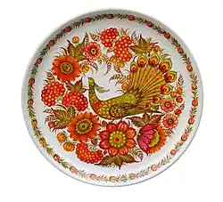 Petrykivka painting (or simply "Petrykivka"; Ukrainian: Петриківський розпис) is a traditional Ukrainian decorative painting style, originating from the rural settlement of Petrykivka in Dnipropetrovsk Oblast of Ukraine, where it was traditionally used to decorate house walls and everyday household items. The earliest known examples of this style date from the 18th century, but it continues to thrive and develop as a modern art form.