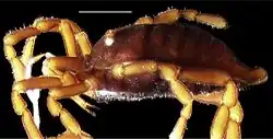 The family Pettalidae is monophyletic, although it is at the moment (2007) unclear what the nearest relatives are. It probably originated in the southern part of Gondwana.[1] Parsimony analysis suggests it could be a sister group to the remaining Cyphophthalmi, though this could also be the case for the Stylocellidae,[1] or it could be related to the Sironidae, or specifically to the sironid genus Suzukielus.[2] It is unrelated to the Troglosironidae that are endemic to New Caledonia.