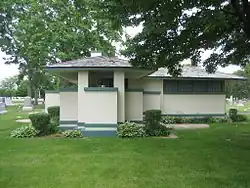 Pettit Memorial Chapel or Pettit Chapel was designed by architect Frank Lloyd Wright and constructed in 1907. The Pettit Chapel is located in the Belvidere Cemetery in Belvidere, Illinois, United States, which is in Boone County. The cemetery was chartered in 1837 and contains 13,000 known graves.[2] The chapel was listed on the U.S. National Register of Historic Places December 1, 1978.[3] The Pettit Chapel is an example of Frank Lloyd Wright's famed Prairie Style. It is the only funerary structure designed by Wright to be built in his lifetime.