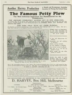 - ^ 'Harvey "Petty" Orchard Disc Stripping Plow', Daniel Harvey Limited, Box Hill, Melbourne, Victoria Bulletin No 8, Page 2, Circa 1935, Museum Victoria Collection