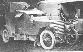 The Peugeot armoured car was a four-wheeled armoured vehicle based on a commercial Peugeot truck that was quickly developed by the French in 1914 for use during the First World War.