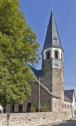 - Evangelical church, Brühlstraße 1 – two-naved galleried hall church with Romanesque elements, sandstone-block building, 1907/1908