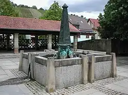 - Both the fountain on the Kelterplatz and a wall fountain nearby were laid out by the sculptor Gunther Stilling.