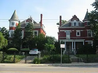 The Pfleger Family Houses are a pair of adjacent historic residences in Cincinnati, Ohio, United States. Built in the Queen Anne style in the late nineteenth century,[1] they were the homes of multiple members of the locally prominent Pfleger family. An immigrant from Germany, Julius Pfleger built the two houses; with his wife Catharine, he inhabited the western house, while the eastern house was the home of their son Edward and his family.[2]