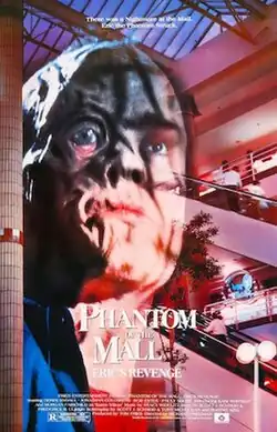 Phantom of the Mall: Eric's Revenge is a 1989 American slasher film directed by Richard Friedman, and starring Derek Rydall, Jonathan Goldsmith, Rob Estes, Pauly Shore, Kari Whitman, Ken Foree, and Morgan Fairchild. It follows a young man who apparently dies in a suspicious house fire after saving his girlfriend, Melody;[4] a year later, at the new mall built over the site of the burned-out house,[5] thefts and murders begin to occur as a mysterious figure secretly prowls around the shopping center and takes a keen interest in watching over and protecting Melody.
