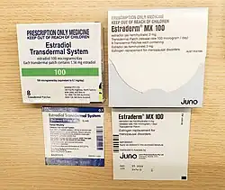 Estradiol can be taken by mouth, held under the tongue, as a gel or patch that is applied to the skin, in through the vagina, by injection into muscle or fat, or through the use of an implant that is placed into fat, among other routes.[10]