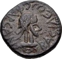 Pharsanzes (Greek: Τιβέριος Ἰούλιος Φαρσάνζης, romanizedTiberios Ioulios Farsanzes), also known as Farsanza,[1] was the king of the Bosporan Kingdom, a Roman client state, from 253 to 254. Virtually no historical information is known of Pharsanzes's reign on account of the king only being known from coinage. His reign overlaps completely with the reign of Rhescuporis V (r. 240–276). As a result, Pharsanzes is most frequently believed to have been a rival claimant or usurper, though some researchers believe he was a co-ruler granted power by Rhescuporis V.