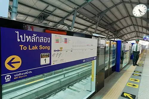 ![]() Sign showing route information of platform 1 of Phasi Charoen MRT station | |||||||||||
