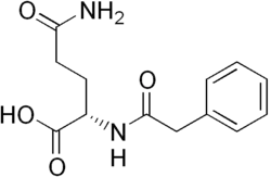 Elevated levels of nitrogen in the blood increase the amount of glutamine, the primary, non-toxic carrier of ammonia in the blood, within patients with hyperammonemia and inborn errors in urea synthesis.[6] Phenylacetylglutamine levels in the urine serves as a more effective biomarker for the excretion of nitrogenous waste than measures of blood plasma, which fluctuate and are a less effective therapeutic monitor of waste nitrogen levels. A 24-hour metabolic urine test of phenylacetylglutamine provides a non-invasive biomarker of waste nitrogen that most consistently reflects the dose of phenylbutyric acid or glycerol phenylbutyrate used to treat patients with urea-cycle disorders.[7][8] Phenylacetylglutamine isotopically labeled with 14C also serves more broadly to characterize relative rates of cellular reactions and functions as a general, non-invasive biomarker for gluconeogenesis and citric acid cycle intermediates in the liver.[4]