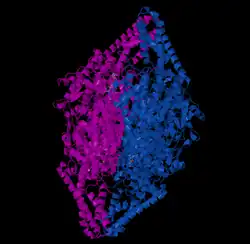 17. ^ a b c Calabrese JC, Jordan DB, Boodhoo A, Sariaslani S, Vannelli T (September 2004). "Crystal structure of phenylalanine ammonia lyase: multiple helix dipoles implicated in catalysis". Biochemistry. 43 (36): 11403–16. doi:10.1021/bi049053+. PMID 15350127.