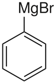 Phenylmagnesium bromide, with the simplified formula C6H5MgBr, is a magnesium-containing organometallic compound. It forms colorless crystals. It is commercially available as a solution in diethyl ether or tetrahydrofuran (THF). Phenylmagnesium bromide is a Grignard reagent. It is often used as a synthetic equivalent for the phenyl "Ph−" synthon.
