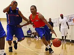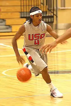 In 2008, Pressey's family moved to Dallas when Paul took a job with the New Orleans Hornets, and Phil began to play with Episcopal School of Dallas for his junior season.[4] During his two years at Episcopal, the team won its second and third consecutive SPC Division I boys' state championship in 2009 and 2010.[6] He was one of the two best point guards at the July 2009 LeBron James Skills Academy, according to reports in The Plain Dealer.[7] Pressey made his verbal commitment to Missouri on September 13, 2009.[8] Pressey's father, Paul, had been teammates with Missouri head coach Mike Anderson.[9] Anderson had known Pressey since he was an infant and remained close to the family as "Uncle Mike".[10] On April 12, 2010, Pressey's older brother Matt, who was a junior college transfer, gave his verbal commitment to join his brother in Missouri's 2010 entering class.[11] On April 15, Oregon attempted to lure Anderson,[12] but after meeting with Oregon's athletic director, Anderson decided to stay at Missouri.[13]