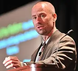 ![]() Simon speaking at PostalVision 2020 in 2012. | |
