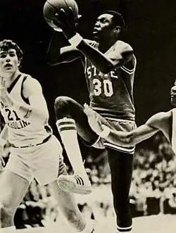In his senior year, he was the team's second-leading scorer and rebounder with 438 points, averaging 14.6 points and 9.1 rebounds per game.[6][1] He was the top rebounder in ten of thirty games and was the high scorer twice.[7] That year, NC State did not win the ACC Tournament to gain entry to the NCAA championship; however, they did play in the National Invitational Tournament, winning two games and losing the third by one point.[7]